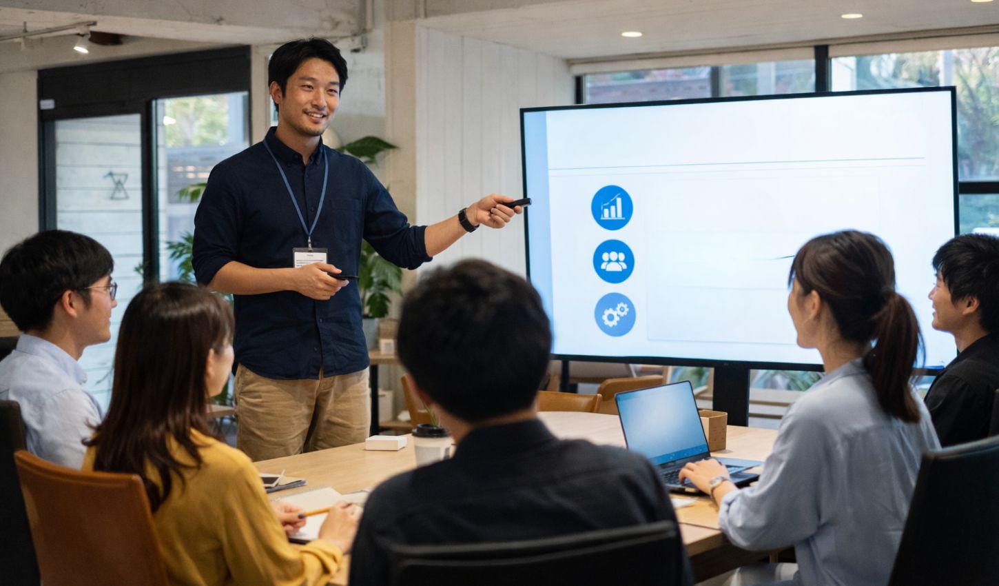 本プログラムは、企業のリアルな課題をテーマに、実際の仕事に近い形でスキルを身につけられる実践型の研修です。参加者の多くは未経験からのスタート。小さなステップから始め、チームでサポートしながら、少しずつ「できること」を増やしていきます。